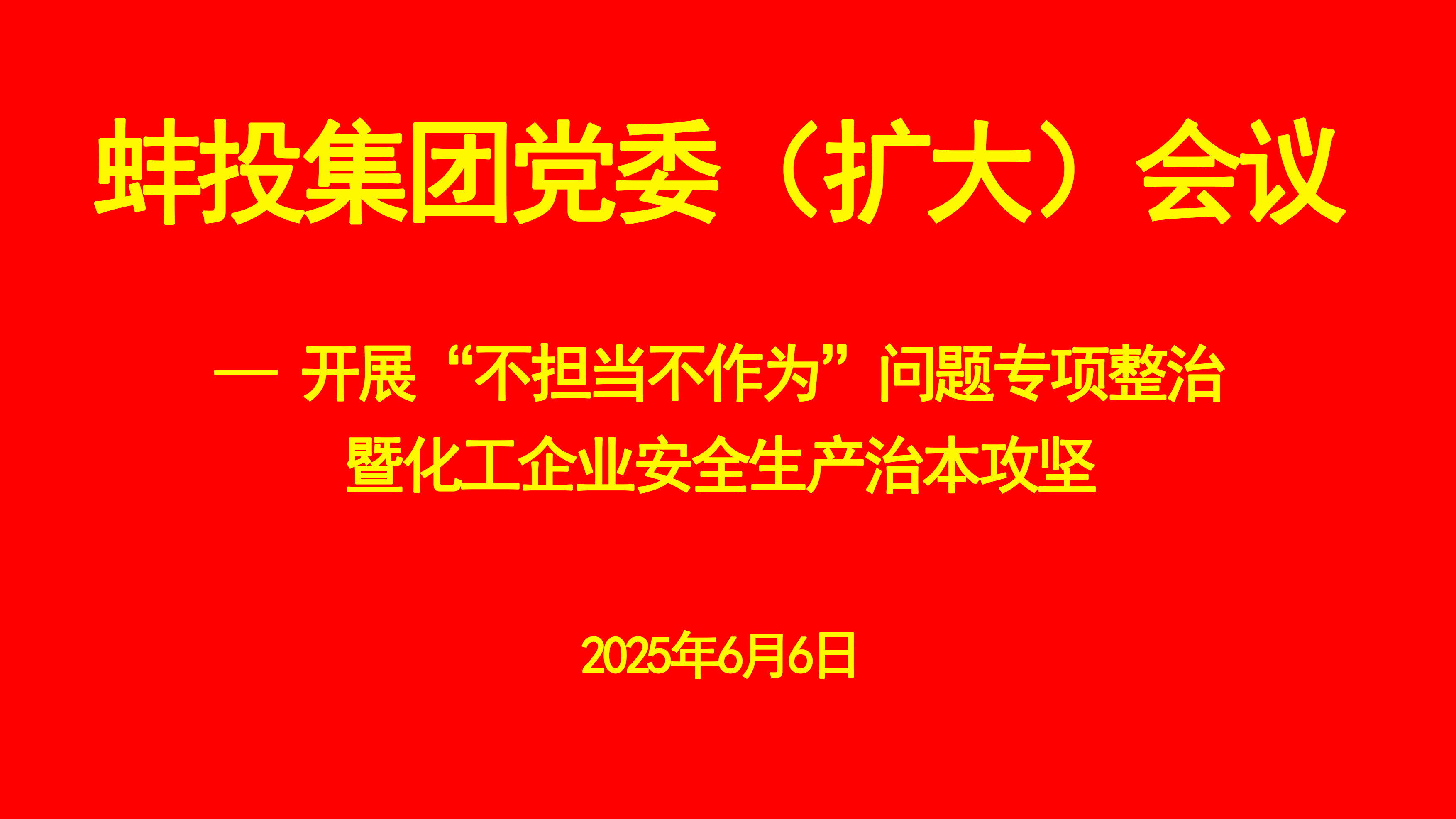6月6日上午,蚌投集團(tuán)在淮上區(qū)沫河口工業(yè)園天潤(rùn)化工會(huì)議室召開黨委(擴(kuò)大)會(huì)議,專題研究部署開展“不擔(dān)當(dāng)不作為...